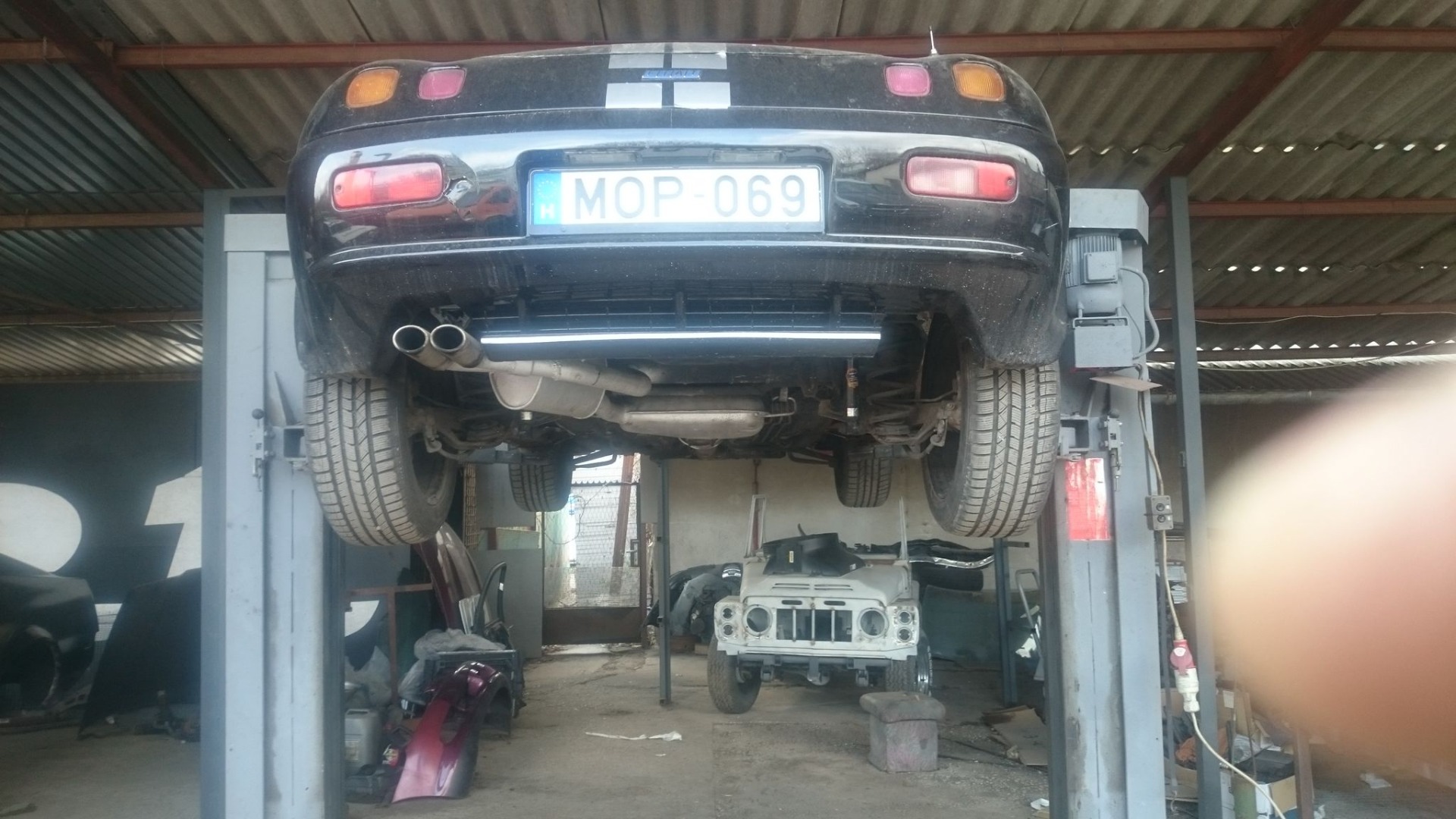 Tetszett a műhelyben, hogy menet közben itt-ott érdekes autókkal is találkoztam, mint pl a bal oldalon levő elenor, de nem ő volt az egyetlen Mustang. A békebeli katona jeep a háttérben is magáért beszél, mint ahogy a hetvenes évekbeli dodge, vagy egy-két hasonló korú cabrio amiket láttam jártamban-keltemben. Valóban restaurátori műhelynek látszott.