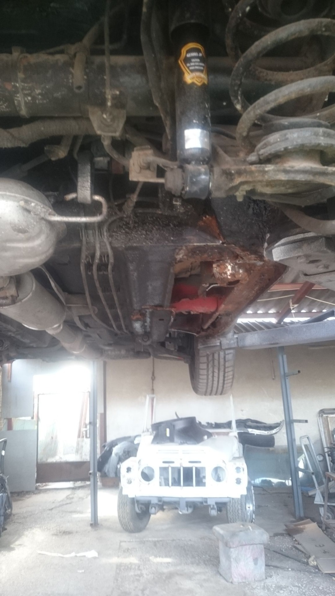 Elmentem a megszokott olasz autós szervizembe, ahol kaptam egy telefonszámot egy restaurátorhoz. Mivel az autó idős így javító elemeket nem lehet kapni hozzá, ezért volt szükség olyan szakemberre, aki az eredeti mintája alapján le tudja gyártani a fenéklemezt. Ez is történt valahol zuglóban.